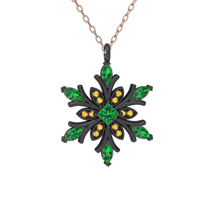 Yeşil kuvars ve sitrin 925 ayar siyah rodyum kaplama gümüş kolye (40 cm rose altın rolo zincir)