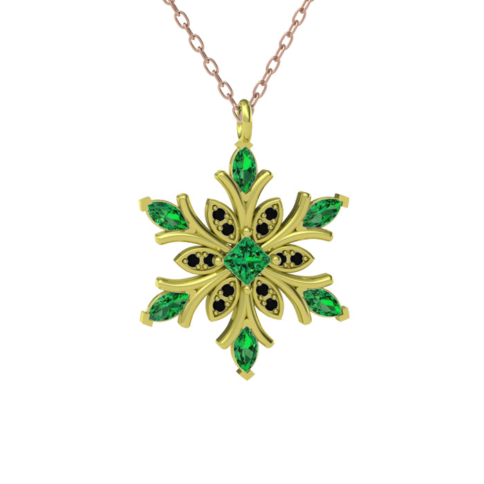 Yeşil kuvars ve siyah zirkon 14 ayar altın kolye (40 cm rose altın rolo zincir)