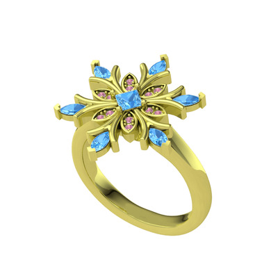 Akuamarin ve pembe kuvars 925 ayar altın kaplama gümüş yüzük