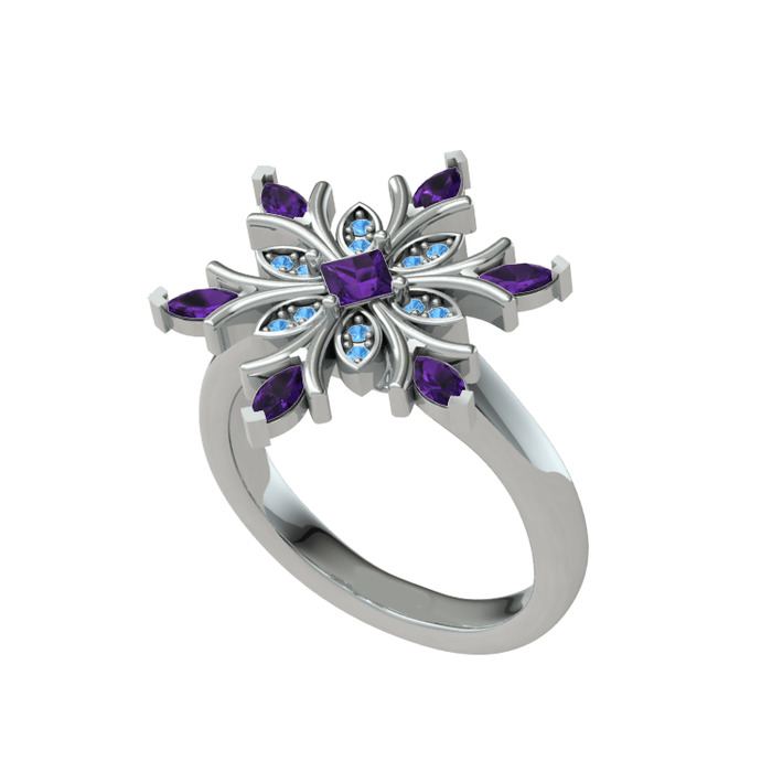 Ametist ve akuamarin 18 ayar beyaz altın yüzük