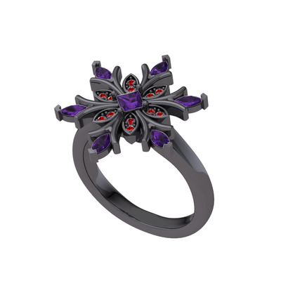 Ametist ve garnet 925 ayar siyah rodyum kaplama gümüş yüzük