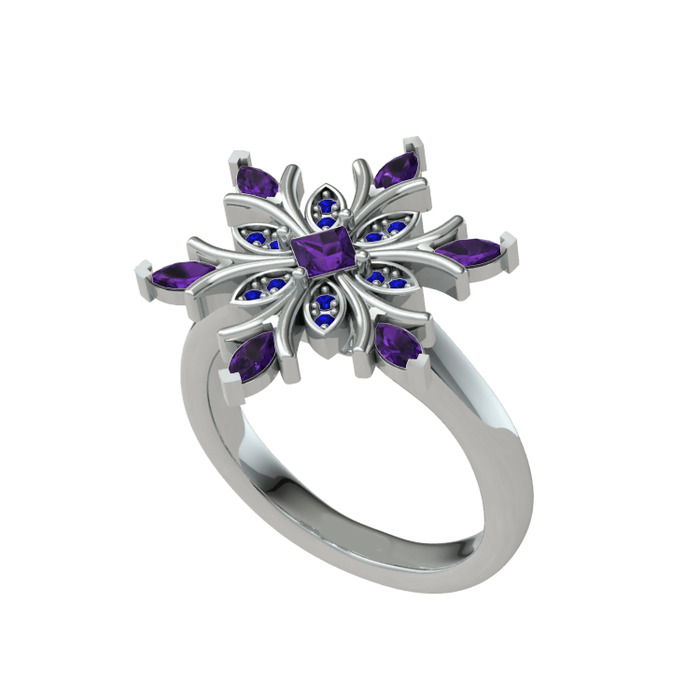 Ametist ve lab safir 925 ayar gümüş yüzük
