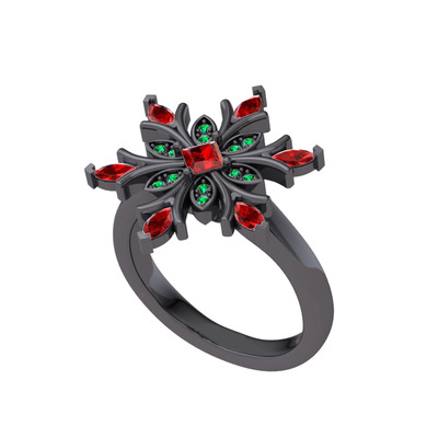 Garnet ve yeşil kuvars 925 ayar siyah rodyum kaplama gümüş yüzük