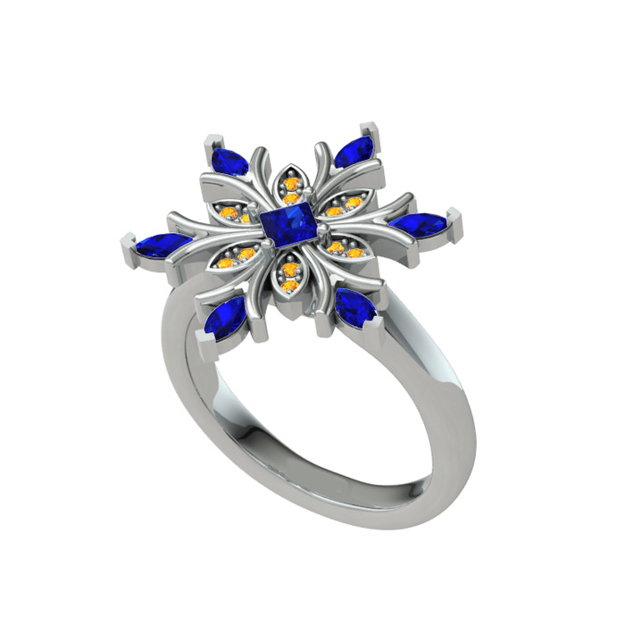 Lab safir ve sitrin 18 ayar beyaz altın yüzük