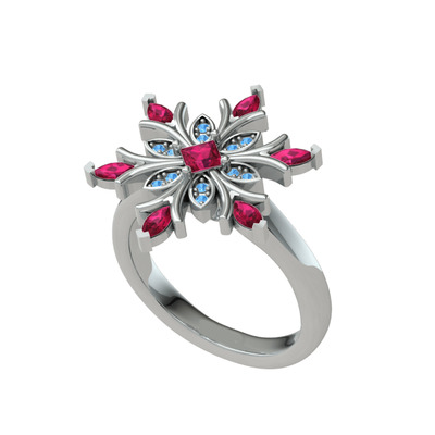 Rodolit garnet ve akuamarin 18 ayar beyaz altın yüzük