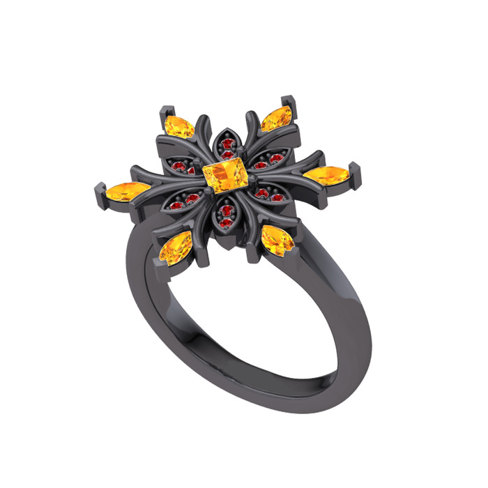 Sitrin ve garnet 925 ayar siyah rodyum kaplama gümüş yüzük