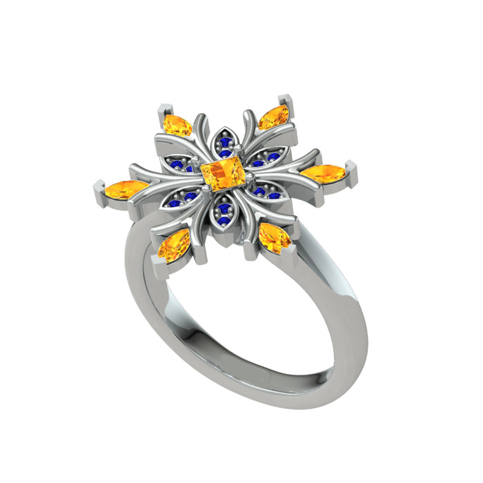 Sitrin ve lab safir 14 ayar beyaz altın yüzük