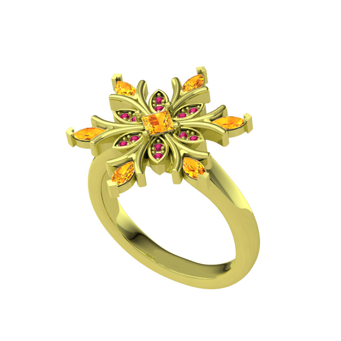 Sitrin ve rodolit garnet 8 ayar altın yüzük