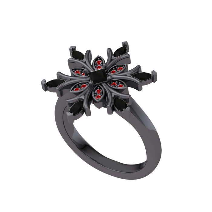 Siyah zirkon ve garnet 925 ayar siyah rodyum kaplama gümüş yüzük
