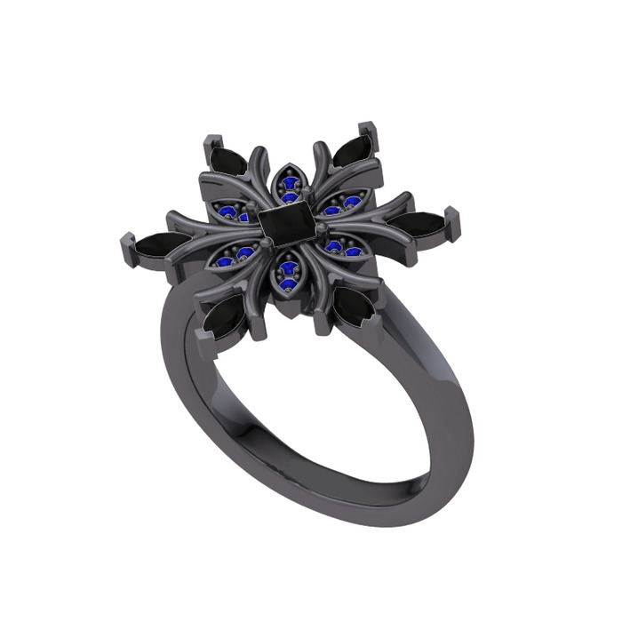 Siyah zirkon ve lab safir 925 ayar siyah rodyum kaplama gümüş yüzük