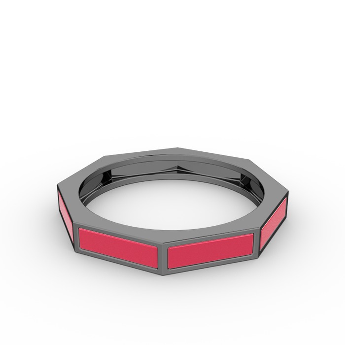 925 ayar siyah rodyum kaplama gümüş yüzük (Neon pembe mineli)