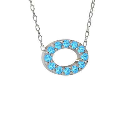 Akuamarin 14 ayar beyaz altın kolye (40 cm gümüş rolo zincir)