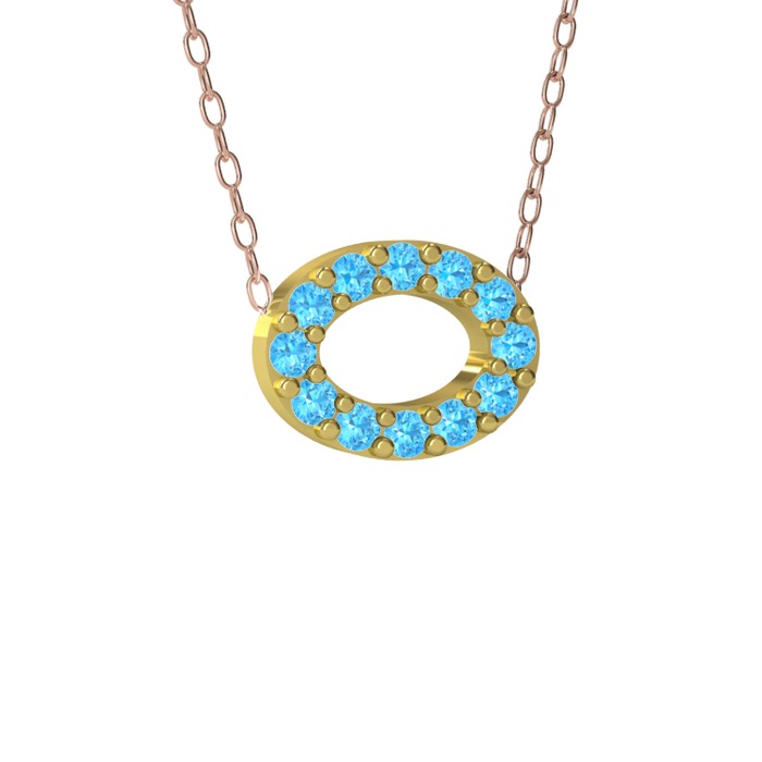 Akuamarin 925 ayar altın kaplama gümüş kolye (40 cm rose altın rolo zincir)