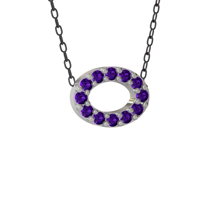 Ametist 14 ayar beyaz altın kolye (40 cm gümüş rolo zincir)