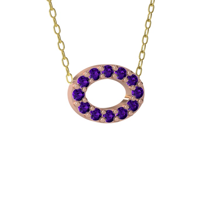 Ametist 14 ayar rose altın kolye (40 cm gümüş rolo zincir)