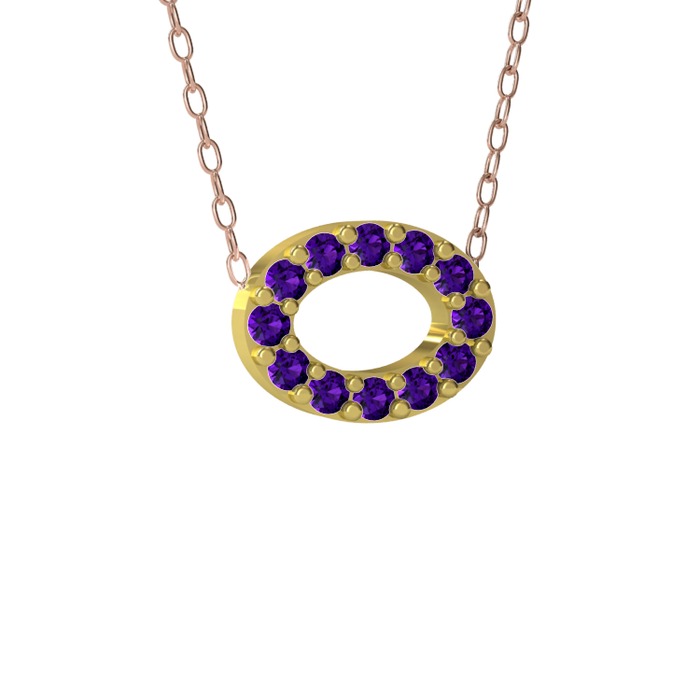 Ametist 18 ayar altın kolye (40 cm rose altın rolo zincir)