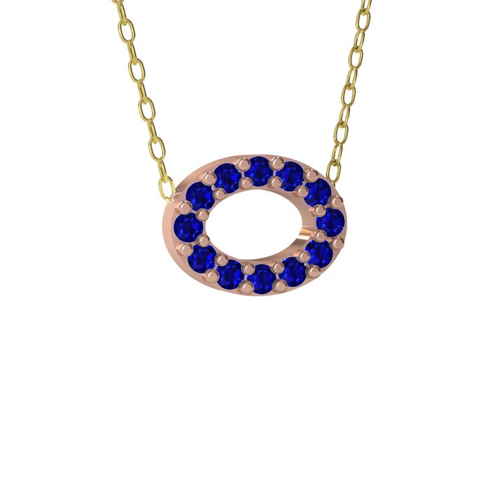 Lab safir 8 ayar rose altın kolye (40 cm altın rolo zincir)