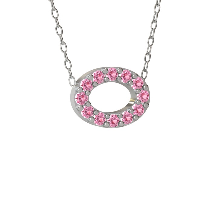 Pembe kuvars 14 ayar beyaz altın kolye (40 cm beyaz altın rolo zincir)