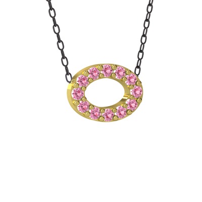 Nola Elips Kolye - Pembe kuvars 925 ayar altın kaplama gümüş kolye (40 cm gümüş rolo zincir)