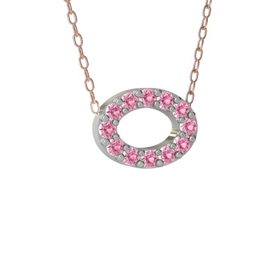 Pembe kuvars 925 ayar gümüş kolye (40 cm rose altın rolo zincir)