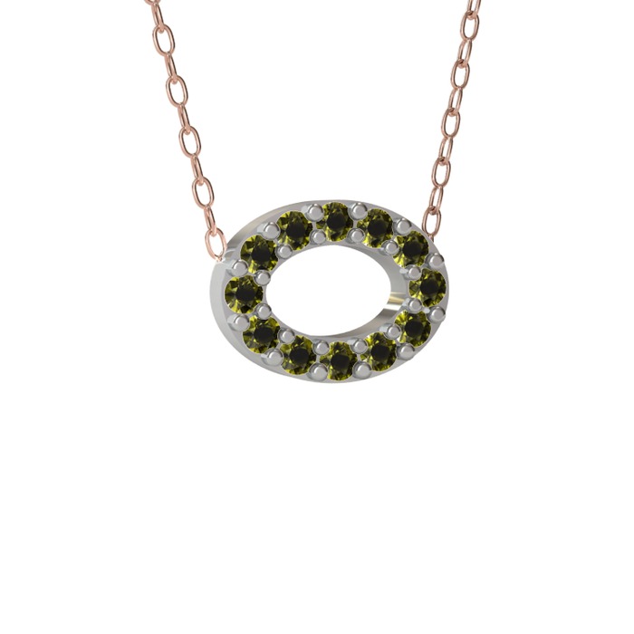 Peridot 8 ayar beyaz altın kolye (40 cm gümüş rolo zincir)