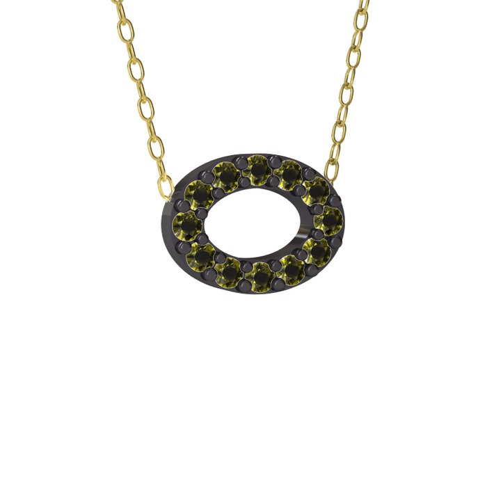 Peridot 925 ayar siyah rodyum kaplama gümüş kolye (40 cm gümüş rolo zincir)