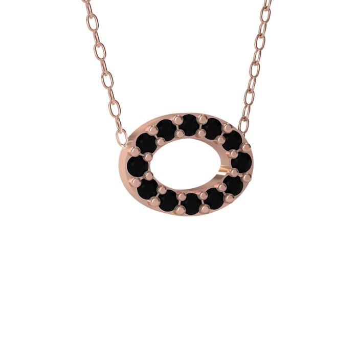 Siyah zirkon 14 ayar rose altın kolye (40 cm rose altın rolo zincir)