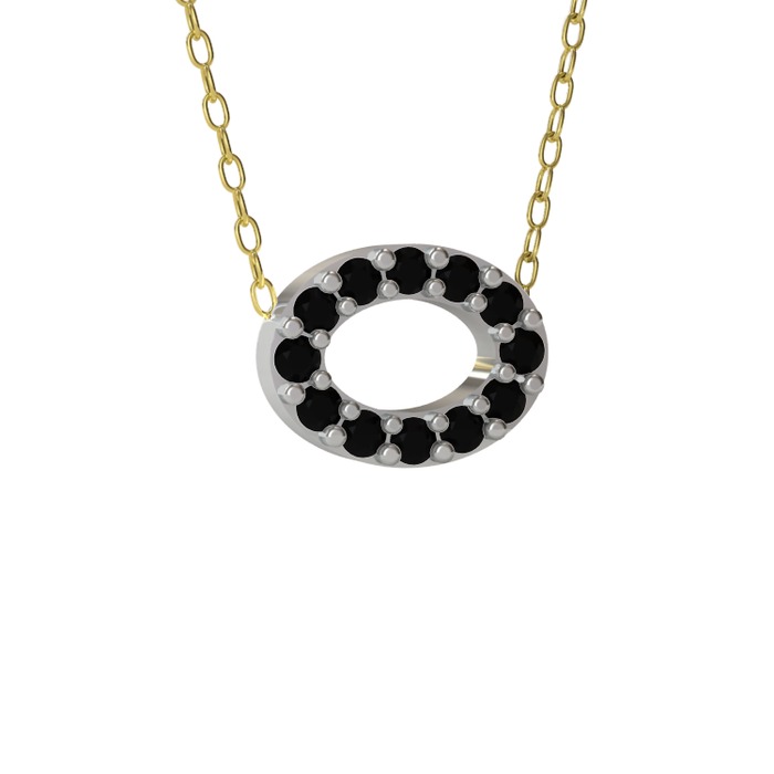 Siyah zirkon 8 ayar beyaz altın kolye (40 cm altın rolo zincir)