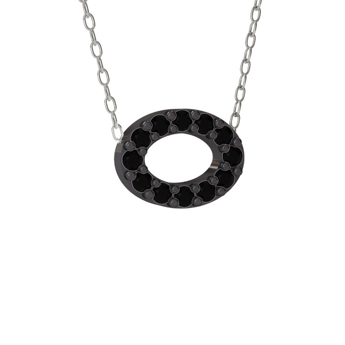 Siyah zirkon 925 ayar siyah rodyum kaplama gümüş kolye (40 cm beyaz altın rolo zincir)