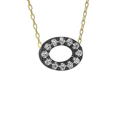 Swarovski 925 ayar siyah rodyum kaplama gümüş kolye (40 cm gümüş rolo zincir)