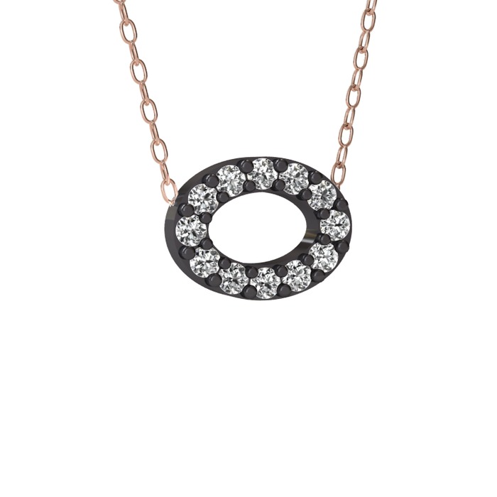 Swarovski 925 ayar siyah rodyum kaplama gümüş kolye (40 cm rose altın rolo zincir)