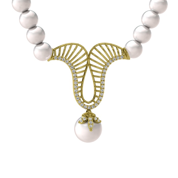 Inci ve beyaz zirkon 14 ayar altın kolye
