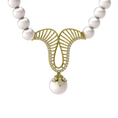 Inci ve beyaz zirkon 8 ayar altın kolye