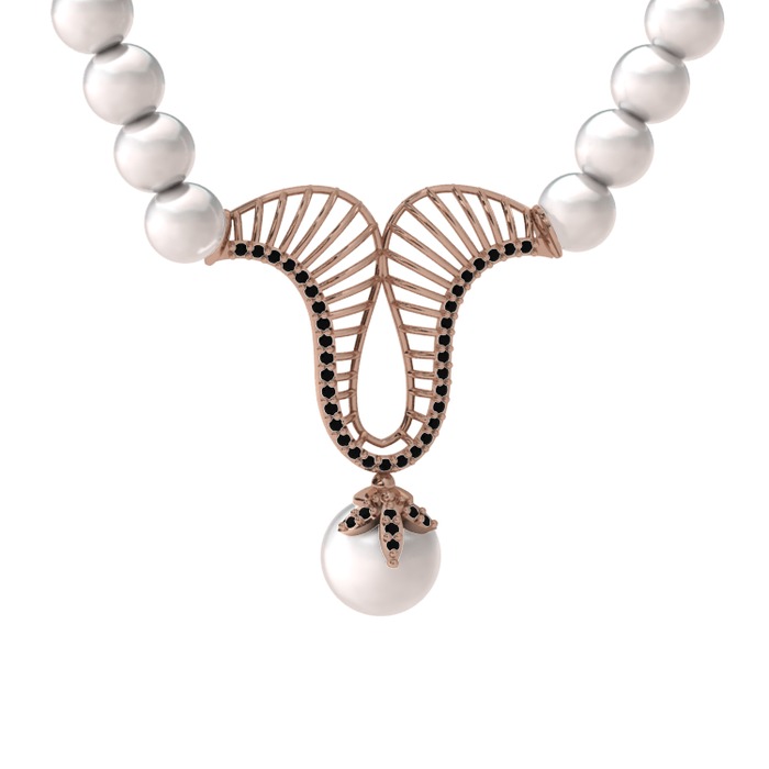 Inci ve siyah zirkon 8 ayar rose altın kolye
