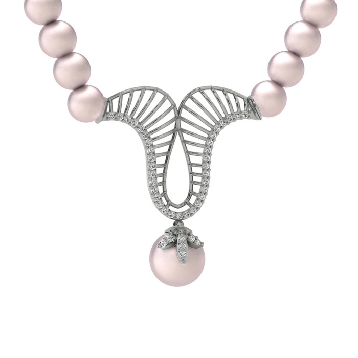 Pembe inci ve swarovski 18 ayar beyaz altın kolye