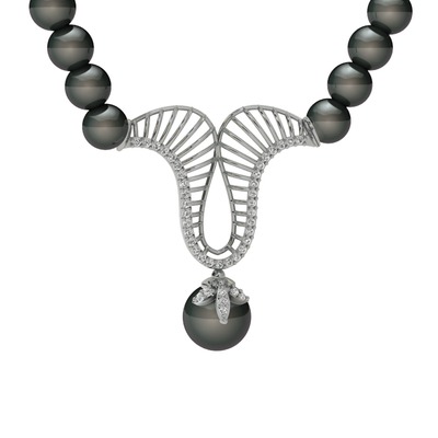 Siyah inci ve beyaz zirkon 8 ayar beyaz altın kolye