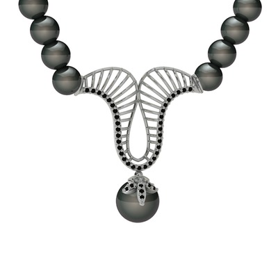 Siyah inci ve siyah zirkon 14 ayar beyaz altın kolye