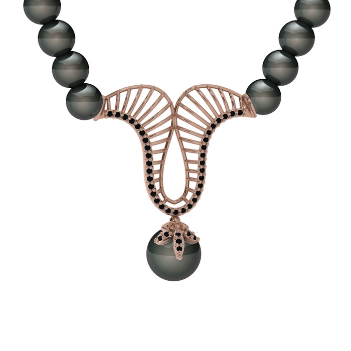 Siyah inci ve siyah zirkon 14 ayar rose altın kolye