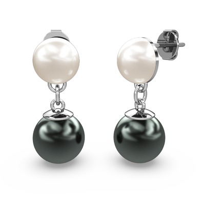 Siyah inci ve inci 925 ayar gümüş küpe
