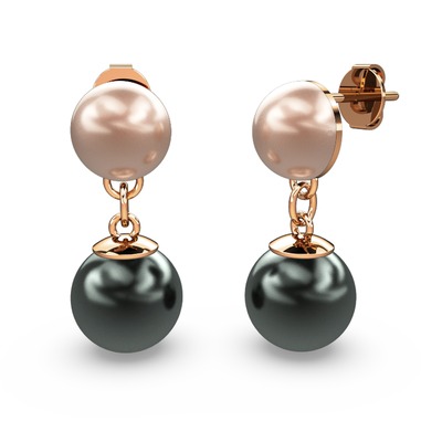 Siyah inci ve pembe inci 925 ayar rose altın kaplama gümüş küpe
