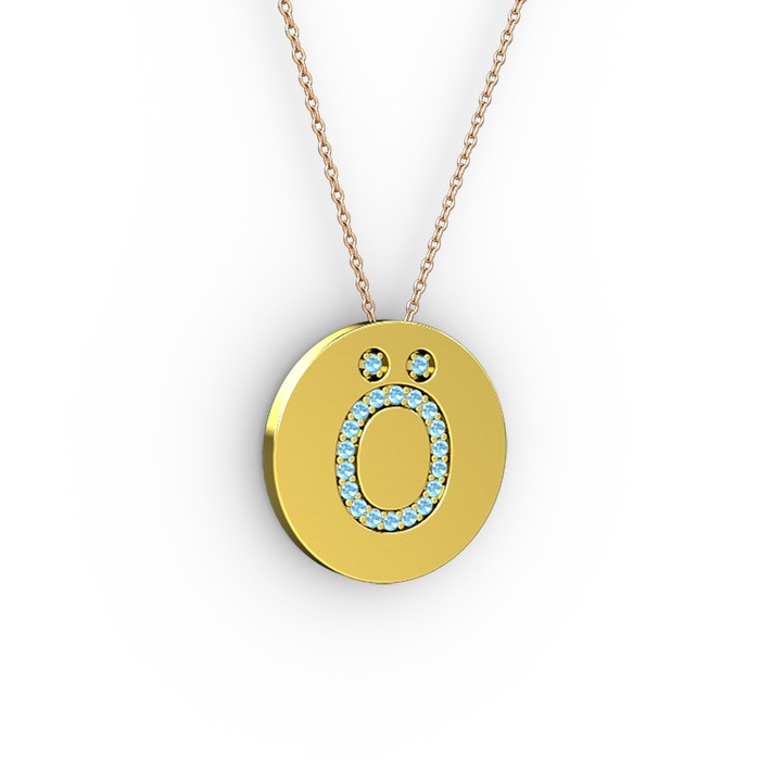 Akuamarin 925 ayar altın kaplama gümüş kolye (40 cm rose altın rolo zincir)