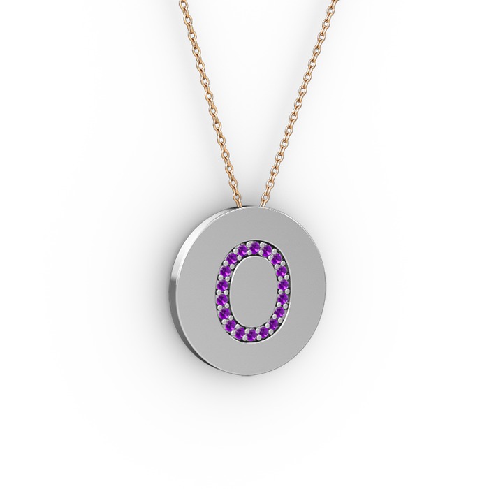 Ametist 18 ayar beyaz altın kolye (40 cm rose altın rolo zincir)