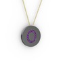 Ametist 925 ayar siyah rodyum kaplama gümüş kolye (40 cm altın rolo zincir)