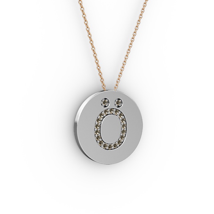 Dumanlı kuvars 8 ayar beyaz altın kolye (40 cm gümüş rolo zincir)