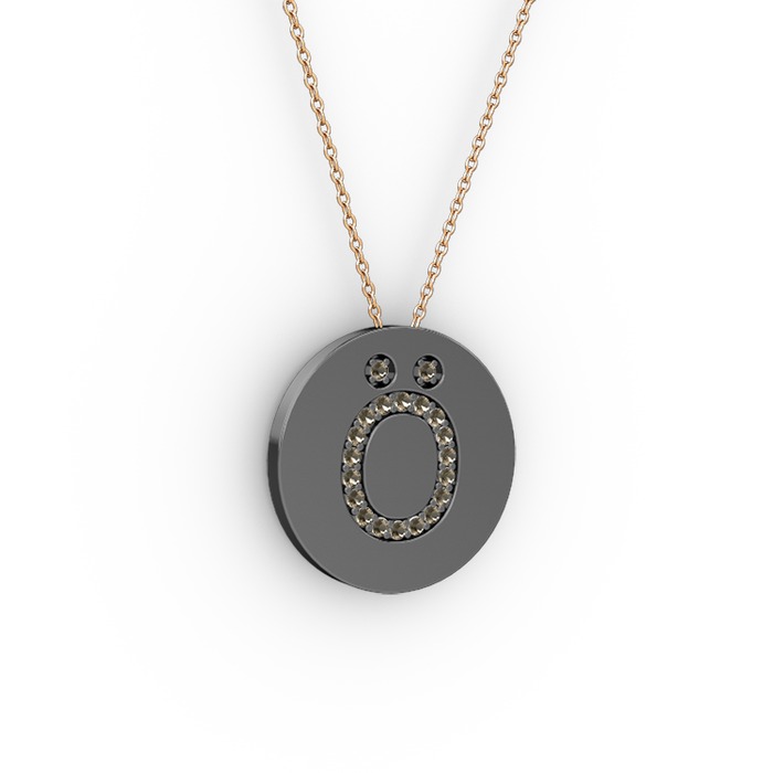Dumanlı kuvars 925 ayar siyah rodyum kaplama gümüş kolye (40 cm gümüş rolo zincir)