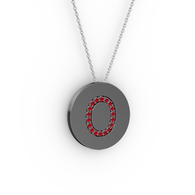 O Baş Harf Kolye - Garnet 925 ayar siyah rodyum kaplama gümüş kolye (40 cm gümüş rolo zincir)