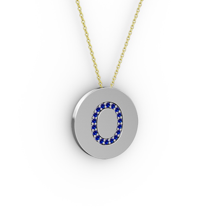 Lab safir 18 ayar beyaz altın kolye (40 cm altın rolo zincir)