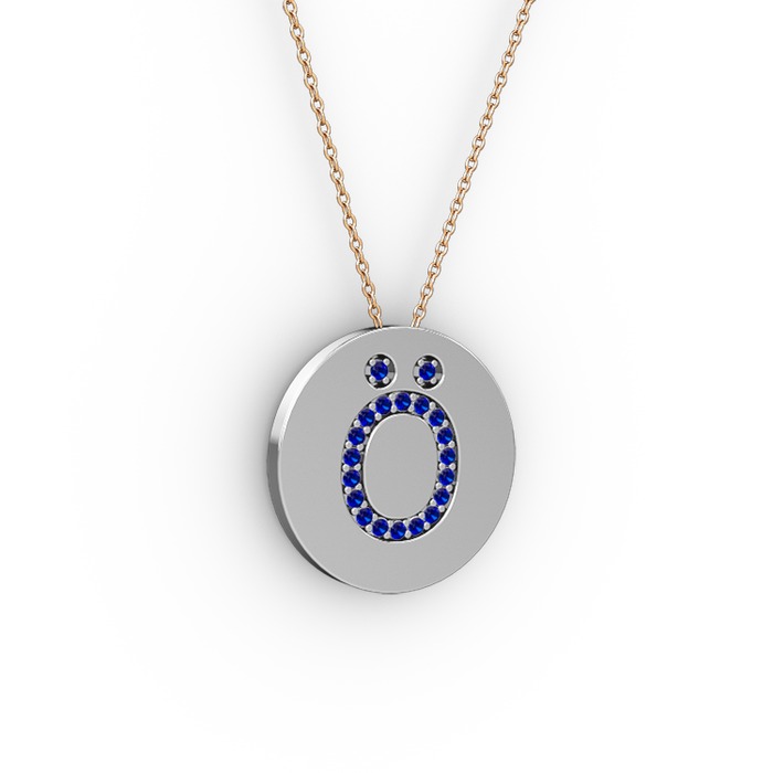 Lab safir 18 ayar beyaz altın kolye (40 cm gümüş rolo zincir)