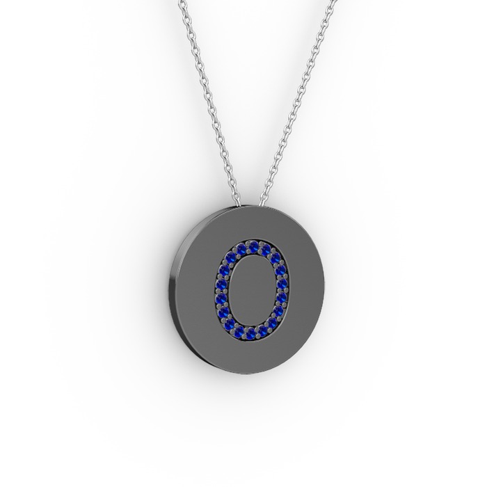 O Baş Harf Kolye - Lab safir 925 ayar siyah rodyum kaplama gümüş kolye (40 cm gümüş rolo zincir)