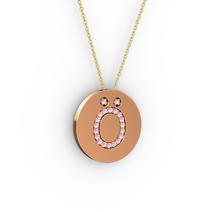 Pembe kuvars 14 ayar rose altın kolye (40 cm altın rolo zincir)